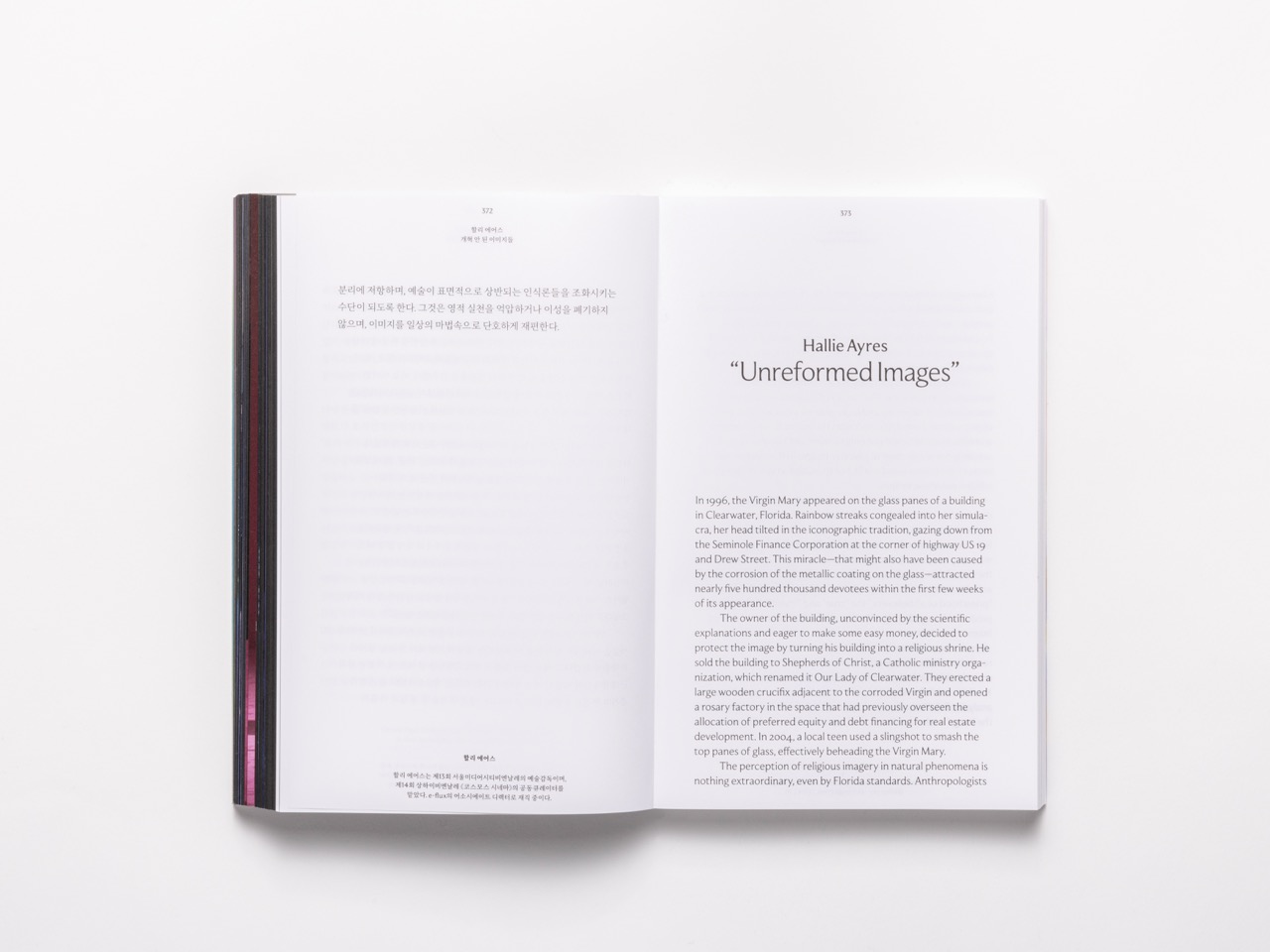 2025년 8월 26일부터 11월 23일까지 서울시립미술관, 낙원상가, 서울아트시네마, 청년예술청에서 열린 제13회 서울미디어시티비엔날레 《강령: 영혼의 기술》의 전시도록으로, 생생한 기록 사진과 함께 수록된 여러 텍스트 정보와 지식이 비엔날레를 맥락화하며 확장한다. 본 비엔날레는 안톤 비도클, 할리 에어스, 루카스 브라시스키스 기획으로, 근대의 출발부터 오늘날에 이르기까지 예술과 영적 실천 간의 관계를 탐구하며, 현대미술과 추상미술의 태동을 예견한 신비주의자들과 영매들의 계보를 동시대 작가들의 실천들과 평행하게 읽어낸다. 한글과 영어 병기로 완성된 650페이지 내외 분량의 도록은 커미션 에세이와 인터뷰를 수록하며, 이를 통해 주변화된 믿음의 체계들이 근현대 미술의 전개에 미친 영향을 성찰하고, 우리 세계에 만연한 예술의 형식주의, 사회학, 유물론적 해석에 대한 대안을 제시한다.