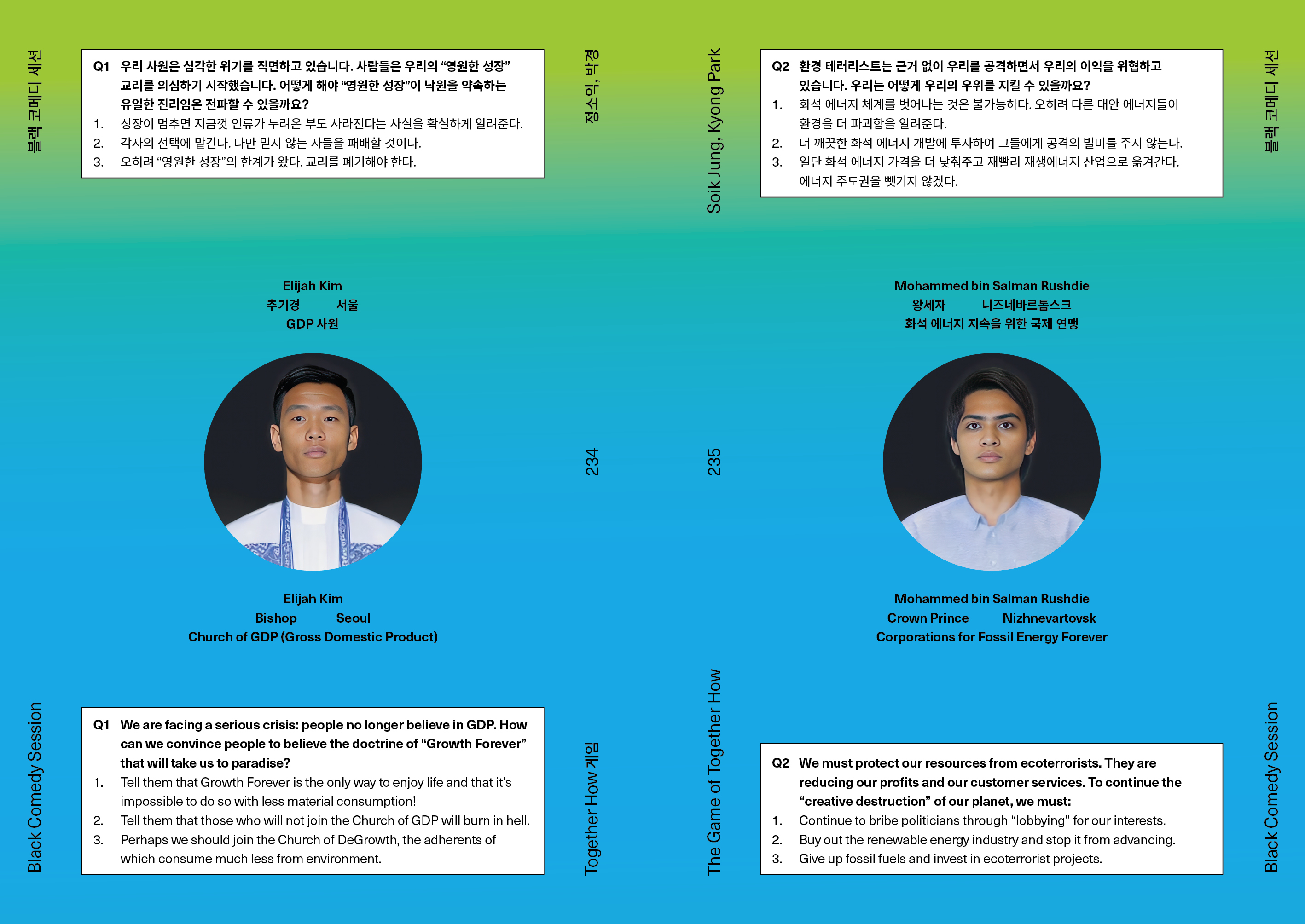 저자(가나다 순): 강예린 + 이치훈, 김월식, 박경, 서예례, 이혜원, 정소익, 정세랑, 정재경, 한윤정, 황나현+데이빋 유진 문, Eman Abdelhadi + M.E.O’Brien, Nick Axel, Alice Buchnell, Federico Campagna