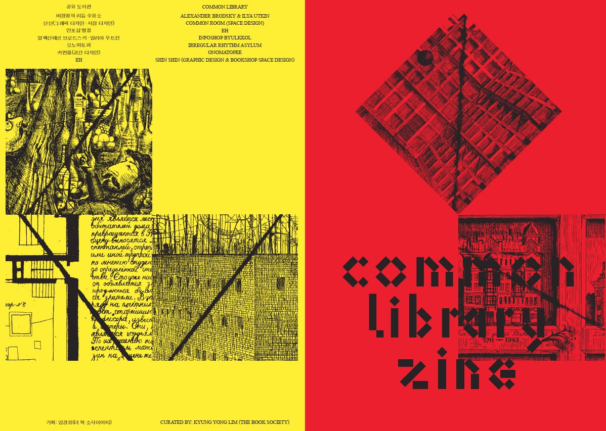 공유 도서관 아카이브와 인포샵을 디자인한 커먼 룸은 한국의 평상 개념을 공간 안으로 가져와 무언가를 함께 나눌 수 있는 물리적 토대를 만들었다. 동시에 공간 안에 높이 솟아 있는 열 개의 철재 앵글은 ‘커먼(common)’이라는 개념에 내재된 배제의 원리를 드러낸다. 한국과 일본의 인포샵인 ‘비정형적 리듬 수용소’와 ‘카페 별꼴’은 인터뷰에서 자신이 처한 조건 안에서 무엇을 말할 수 있는지를 이야기하고, 이번 프로젝트를 위한 진 라이브러리를 제안한다. 여기에는 어떤 의도나 의미 이전의 움직임과 그것이 실현된 물리적 결과물이 있다. 그래픽 디자인 듀오인 신신은 공유 도서관의 아이덴티티와 서점 디자인을 제안했는데, 서점의 물리적인 토대가 되는 큐브형 박스를 기반으로 둔 타이포그래피를 선보인다. 1980년대 러시아 “페이퍼 아키텍츠(Paper Architects)” 집단의 구성원이었던 알렉산더 브로드스키와 일리아 우트킨은 29점의 ‘취소된’ 작업들을 선보인다. “페이퍼 아키텍처” 운동이 제안하지만 실현되지 못한 건축물은 가상의 영역에 머물러 있는 것이 아니라 종이 위에 복제되어 무한히 증식되고 확장될 수 있는 가능성으로 읽힌다. EH는 세운상가를 촬영한 파노라마 이미지를 현수막에 출력해서 전시장에 설치한다. 또한 이 이미지는 도시를 기억하는 대중적인 매체인 우편엽서로 재생산되어 확산된다. EH는 현수막과 우편엽서에서 도시가 도시 구성원이나 방문자에게 어떻게 기억되고 재생산될 수 있는지 살펴본다. 오노마토피는 네덜란드 에인트호번에 있는 출판사로, 프로젝트 기반의 책들을 출간해왔다. 이들의 책은 상당히 독특하고 개별적인 위치를 차지한다. 동시대 출판 활동에서 예술가가 만드는 책은 어떻게 작동할까? 이들이 만든 책은 이 질문에 대한 하나의 답변이 될 수 있을 것이다.